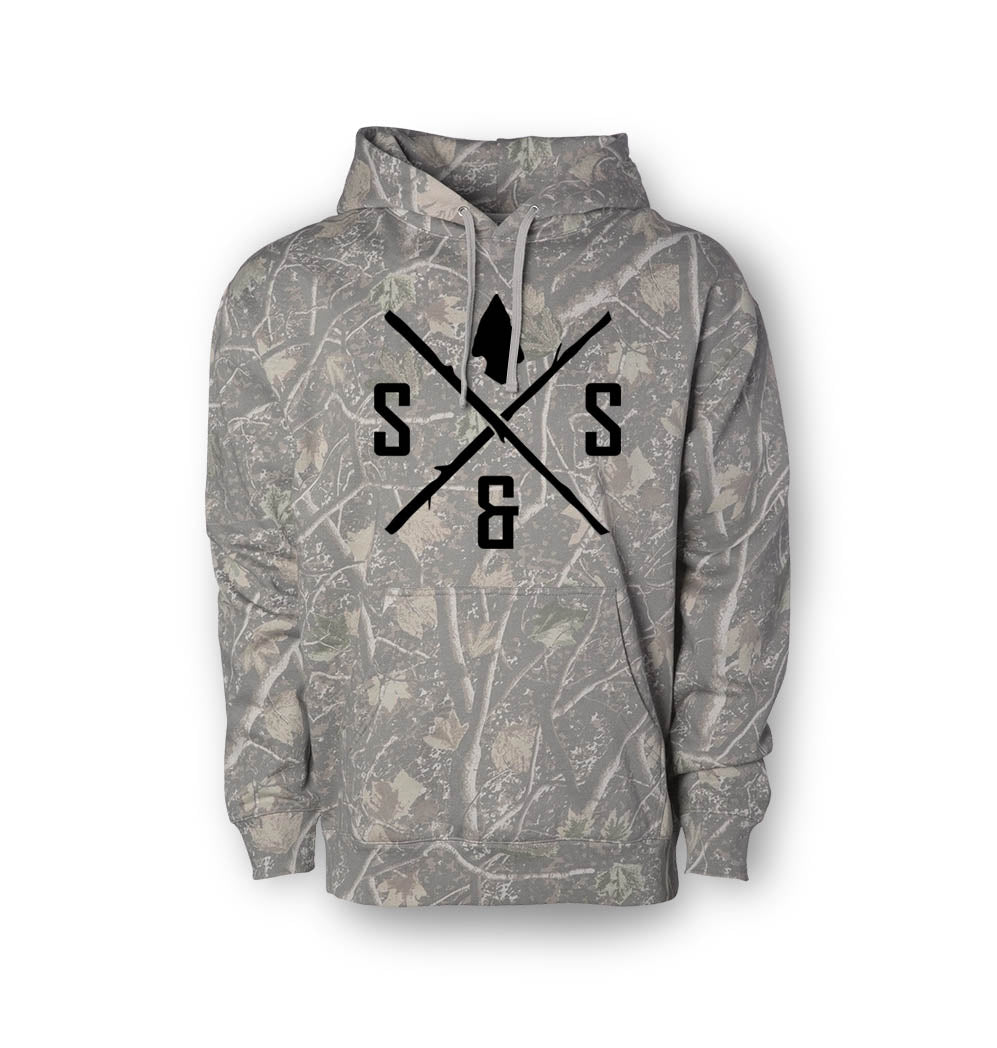 It's made from a cotton and polyester blend fleece, providing a soft, breathable, and durable fabric. The blend ensures comfort and flexibility, making it perfect for outdoor activities like fishing and other adventures.